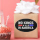 "Pas de rois en Amérique." Cette conception symbolise la liberté, la démocratie et le rejet de la monarchie, en mettant l'accent sur les valeurs fondamentales de l'indépendance et de l'autonomie gouvernementale. Une déclaration puissante pour les patriotes et les libre penseurs.