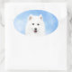 Sticker Ovale Peinture Samoyed Puppy - Jolie Art Original Chien