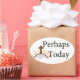 Ce dessin dit "Peut-être aujourd'hui" en gros caractères. Sous une colline avec une croix sur le dessus, en lettres plus petites, le dessin dit "Jésus revient bientôt".