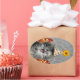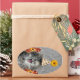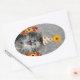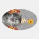 Sticker Ovale Petit chaton de fête sur arrière - plan damassé