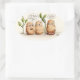 Amusant jeu de mots sur les pommes de terre. Un dessin de trois pommes de terre. La première demande : Pourquoi sommes-nous appelés pommes de terre ? Nous n'avons pas d'orteils. La troisième a de gros pieds avec de gros orteils et dit : Parlez pour vous-mêmes. Frontière arrière - plan verte de chaux.