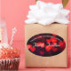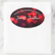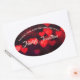 Autocollant de forme ovale, cœurs bokeh rouges sur fond noir et texte personnalisable. Parfait sur les sacs cadeaux pour les invités du couple. Ces autocollants peuvent être utilisés pour de nombreuses occasions, mariages, anniversaires, anniversaire de mariage ou autre événement - Personnalisez le texte pour qu'il convienne à votre événement.