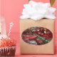 Sticker Ovale Rubans de Noël Rouge Vert et Or Vacances