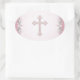 Sticker Ovale Sceaux de fleurs de Damas de croix rose