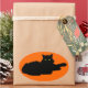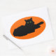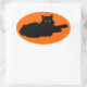 Sticker Ovale Silhouette de chat noir sur orange