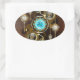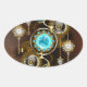 Turquoise lenses with antique watch with brass gears and golden keys on rusty, brown background. Steampunk style.