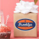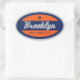 Design de signalisation ovale avec les quartiers de New York. Couleurs officielles orange et bleu de NYC. Ville de New York à Brooklyn.
