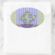 Sticker Ovale Sticule monographique en bloc de théière fleurie