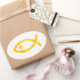 Sticker Ovale Symbole de poisson chrétien d'or avec Crucifix