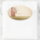 Ce grand Étiquette de Noël ovale Peel-n-Stick exceptionnel présente un tableau qui est un mash-up Art déco des années 1920 et artiste numérique, Leslie Sigal Javorek a son propre style unique d'une chorale asiatique angélique de 3, regroupée derrière un paillette doré, chantant la mélodie d'une Carol de Noël bien-aimée. À leur droite se trouvent les titres "À :" & "De :" prêts pour vous à compléter à la maison.