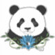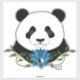 Portrait d'un mignon ours de panda avec une fleur de lotus bleu sur fond de vert