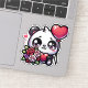 Cet autocollant présente un adorable panda avec de grands yeux pétillants, tenant un bouquet de roses vibrants et un ballon en forme de coeur. Ses joues rougissantes et sa douce expression rayonnent de chaleur et d'amour, ce qui en fait le symbole parfait de l'affection, de l'amour et de la gentillesse. Idéal pour partager à l'occasion d'occasions spéciales comme la Saint-Valentin ou simplement pour répandre la joie et l'amour!