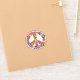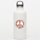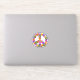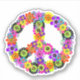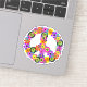Un signe de paix fleuri dans les tons rose, turquoise, jaune, orange, violet, vert et noir.