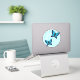 Un bel autocollant avec un motif de mandala bleu dessiné à la main avec des papillons bleus dessus.