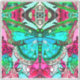 Sticker dans un batik motif numérique d'un Grand papillon turquoise sur un arrière - plan médaillon arabesque orné, dans les tons turquoise et rose rose profond