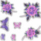 Ces autocollants sont dans un tatouage traditionnel de papillons roses et crâniens. Il y a trois roses différents et trois papillons différents dans la conception. Les papillons ont de petits crânes dans la conception. Voici la couleur rose et violet.
