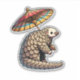 Cette adorable créature a de grands yeux expressifs et un sourire amical. Il est muni d'un parasol coloré, un arc-en-ciel coloré et plein de couleurs. Les écailles du pangolin sont illustrées dans des tons chauds de marron, ce qui ajoute à son charme.