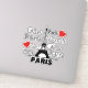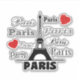 Illustration de design de texte parisien avec tour Eiffel et décoration de coeurs rouges
