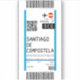 Conception d'un autocollant basé sur une carte d'embarquement pour l'aéroport de Santiago-Rosalía de Castro, A Coruna, Espagne.