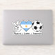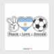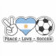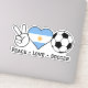 Cet autocollant en vinyle est un grand cadeau pour un fan de football argentin. Le design comprend un signe de main de paix, un drapeau argentin en forme de coeur et un ballon de football avec les mots "Peace Love Soccer".