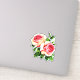 Sticker en deux roses, dans les tons pastel pêche rose à rose corail profond, avec feuilles vert jade