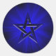 Étoile à cinq branches. Pentagramme en bleu lustré sur noir. Utilisation symbolique dans la Grèce antique et Babylone. Liée à la magie, la planète Vénus et les francs-maçons. Dans le christianisme, symbole de cinq blessures de Jésus