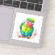 Collier autocollant avec une jolie illustration de perroquet. Un petit perroquet vert aux couleurs bleu et jaune se mélangeant. Le cou a une teinte vif de rose rougeâtre.