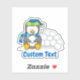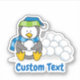 Un petit dessin de pingouin assis et tenant une boule de neige. Texte personnalisé.