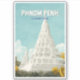 Design rétro de voyage vectoriel de Phnom Penh. Phnom Penh, la capitale vibrante du Cambodge, allie le riche patrimoine khmer à la vie citadine moderne, avec des monuments comme le Palais Royal, la Pagode d'argent et les champs de tuerie historiques.