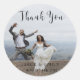 Sticker photo en Merci de Script Lettré noir et blanc. Le texte de cet autocollant de script de brosse écrit à la main peut être mis à jour et customisé avec votre nom et image.