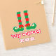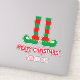 Pieds-elfes amusants personnalisés Sticker en vinyle Joyeux Noël coupé par baiser. Ajoutez votre propre salutation de vacances et nom. Modèle de typographie amusant avec Père Noël de petites chaussures d'aide. Autocollants personnalisés pour produits de vacances, cadeaux et autres objets. Créez vos propres décorations cool. Ajoutez votre propre nom personnalisé, un dicton drôle ou une citation inspirante. Disponible en petites et grandes tailles.