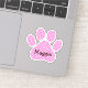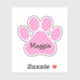 Discover the charm of a pink and white polka dot paw print shape with a custom name, perfect for adding a touch of style and personality to your space.