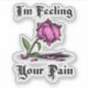 This flower design features a simple lonely pink Rose wilting in despair with the words, “I’m feeling your pain,” in morose typography. Some people can feel others’ pain but words alone don’t always express it. This is one way to visually express your anguish for others’ despair. This design is for anyone who is visually poetic or just in a melancholy mood.
