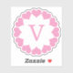 Sticker Pink Valentine Hearts in a Circle with Initial