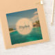Brochure en vinyle / autocollant de contour avec une belle photo représentant un complexe balnéaire tropical. Jolie plage de sable blanc et d'eau bleue avec des paillotes, ce qui lui donne une ambiance insulaire tranquille. Un cercle blanc superposé avec votre nom et votre monogramme initial à l'intérieur.