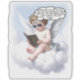 L’autocollant céleste présente une ombre en verre portant du cherub assis sur un nuage en lisant les mots suivants" Lorsque vous vous asseyez en haut, vous ne pouvez pas simplement déposer quoi que ce soit sur ceux qui se trouvent en dessous de vous. Votre déboursement pourrait laisser une tache sur leur vie pour toujours."