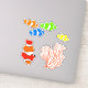 Autocollants de poisson clown avec corail de mer. Des autocollants amusants pour les enfants dans des couleurs vives et primaires. Donnez comme faveurs aux fêtes d'anniversaire thématiques "sous la mer", ou ajoutez aux enveloppes, paquets ou pages de livres à griller.