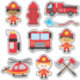 Faites plaisir à votre petit avec ce pack de 10 autocollants de pompiers de bandes dessinées et leurs véhicules et équipements.
