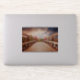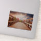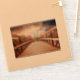 Brochure en vinyle / autocollant de contour avec une photo pittoresque. Un pont en bois qui mène à un chemin entouré d'arbres forestiers qui changent de couleur.