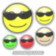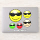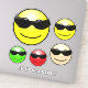 Sticker avec un motif de dessins animés emojis aux visages jaunes, verts, rouges et sépia portant des lunettes de soleil et un sourire. Ajoutez votre nom lorsque vous personnalisez ce modèle. Le sticker vinyle de typographie drôle est 8" x "8 taille. Optez pour la taille 14" x 14" ou l'une des plus petites. Pour votre bureau, pour l'école ou juste pour l'avoir.