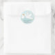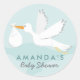 Un joli autocollant de baby shower neutre sur le thème de la cigogne, qui présente un joli jeu de couleurs turquoise bleu, orange et blanc. Une cigogne joyeuse glisse en portant un nouveau petit paquet de joie alors qu'il vole contre un ciel bleu d'eau douce, parsemé de nuages bouffants. Un thème traditionnel est remis à jour dans ce design entièrement moderne avec des illustrations originales et une typographie branchée et fantaisiste. Une invitation de baby shower correspondant est disponible dans ma boutique kat_parrella.