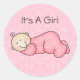 Stickers pour bébés uniques pour filles bébés. Utilisez ces stickers mignons pour les Invitations de douche pour bébés comme enveloppe Sceller ou les ajouter à des cadeaux pour cette touche spéciale. Cette conception a une petite fille qui dort. Customisez le libellé ou utilisez le texte C'est une fille.