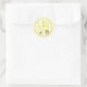 Un autocollant avec un chariot jaune clair à l'intérieur d'un cadre en forme de cercle. Jaune en vichy arrière - plan. Recherchez les articles correspondants tels que les invitations dans la section "Baby Shop" du Pink Schoolhouse Store.