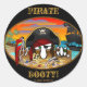 C'est Pirate Kilroy, avec son 1er compagnon Polly Parrot pour l'aider à transporter de l'or, des bijoux et des perles, sur cet autocollant coloré !
