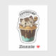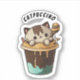 CATPUCCINO Cat Sticker est un design ludique et mignon avec un chat de dessin animé qui savoure un délicieux cappuccino. Le design est coloré et attrayant, avec le chat représenté en position assise, tenant une tasse de cappuccino dans une patte et une cuillère dans l'autre. La fourrure du chat est dépeinte dans une texture douce et moelleuse, avec des teintes brun clair et crème. Le visage du chat est sympathique et expressif, avec de grands yeux ronds, un petit nez rose et un large sourire. Les oreilles du chat sont percées, suggérant un sentiment de bonheur et de contentement. Le cappuccino est représenté dans une texture mousseuse et crémeuse, avec une mousse en forme de coeur sur le dessus. La tasse est blanche, avec une soucoupe bleue et une paille rayée rouge et blanche. L'arrière - plan de l'autocollant est de couleur beige clair, donnant l'impression d'un café chaleureux et cosy. Dans l'ensemble, le Sticker CATPUCCINO Cat est un design ludique et léger, parfait pour les amateurs de chat et de café. Il est sûr de faire sourire n'importe qui et de les faire se sentir chaleureux et fuzzy à l'intérieur.