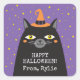 Un mignon chat d'Halloween noir avec un casquette décore cet autocollant. Personnalisez-le pour des gâteries en classe Halloween, ou pour une fête d'Halloween. Conçu pour vous par Blackberry Boulevard.