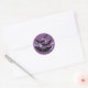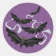 Petit autocollant de forme ronde en violet avec imprimé de chauve-souris Halloween. Customisez cet objet ou achetez tel quel.