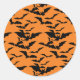 Autocollant de forme ronde en orange avec imprimé chauves-souris Halloween. Customisez cet objet ou achetez tel quel.