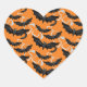 Autocollant en forme de coeur en orange avec imprimé chauves-souris Halloween. Customisez cet objet ou achetez tel quel.