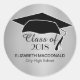 Étiquette de graduation en argent avec texte noir et carton de mortier. Classe de puis le nom du diplômé et le lycée ou le collège suivent. Élégant autocollant à utiliser comme sceau d'enveloppe sur les annonces de remise de diplômes et les annonces de remise de diplômes. Modèle facile à customiser.
